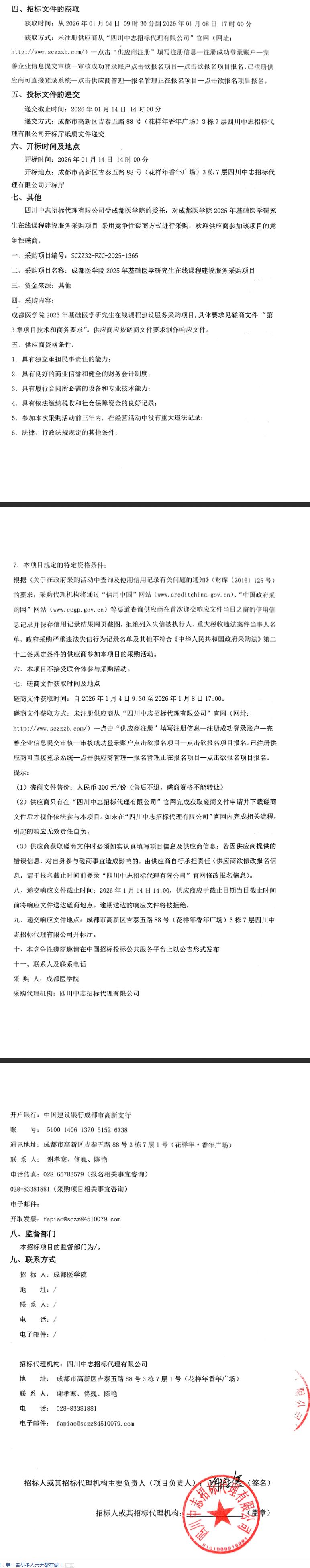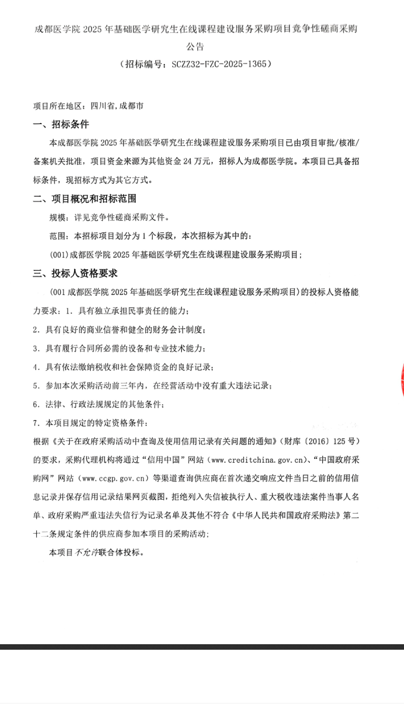 成都医学院2025年基础医学研究生在线课程建设服务采购项目竞争性磋商采购公告