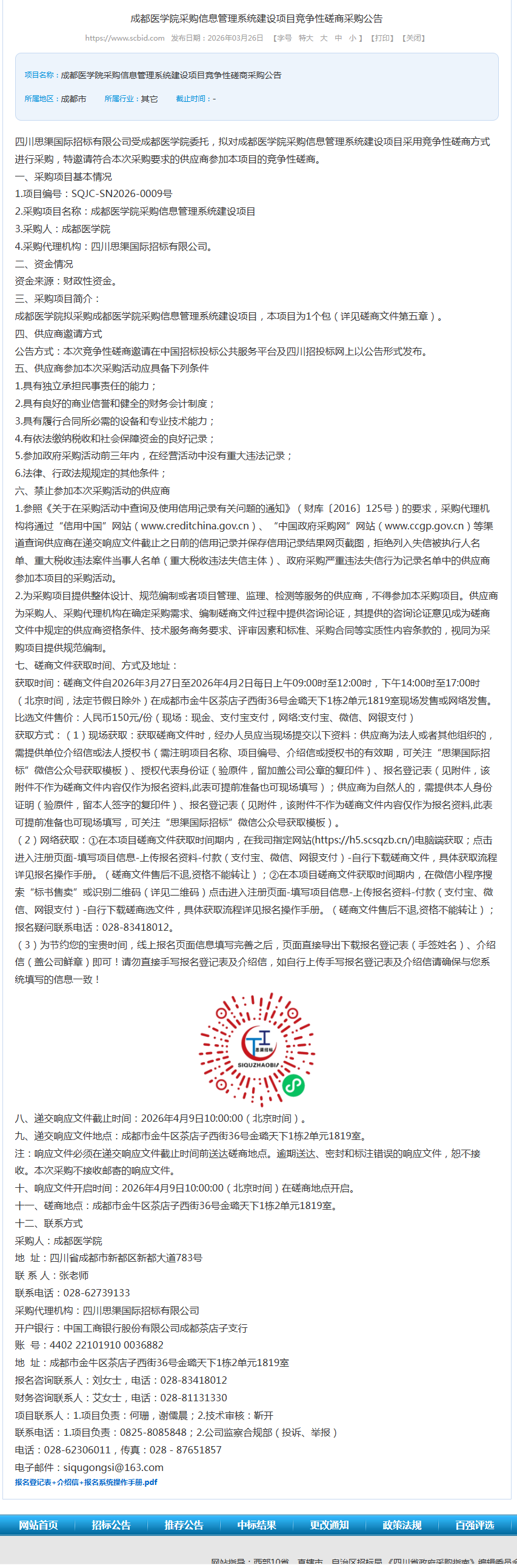 成都医学院采购信息管理系统建设项目竞争性磋商采购公告