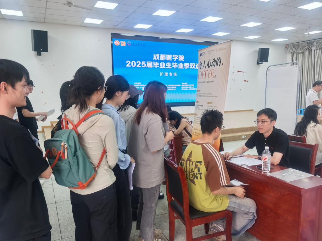 同时,针对护理学专业毕业生,学校特别组织“护理专业专场招聘会”,活动线上线下同步进行,吸引了来自成都及周边各地的75家优质用人单位参与,岗位数量充足、类型丰富,共收取简历285份,初步达成就业意向109人,充分满足护理专业同学们的职业发展需求。