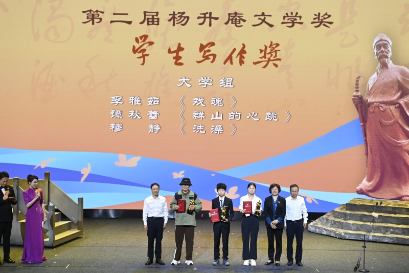 10月13日上午,第二届杨升庵文学奖颁奖仪式在成都市新都区天府家风馆举行,来自全国文学界、联盟城市、媒体、高校等众多代表共聚一堂,以文学之名,续写跨越时空的文脉对话。活动现场揭晓了散文、诗歌、戏剧文学等奖项,我校临床医学院麻醉学专业2022级学生谭秋蕾凭借作品《群山的心跳》,荣获本届“学生写作奖”。