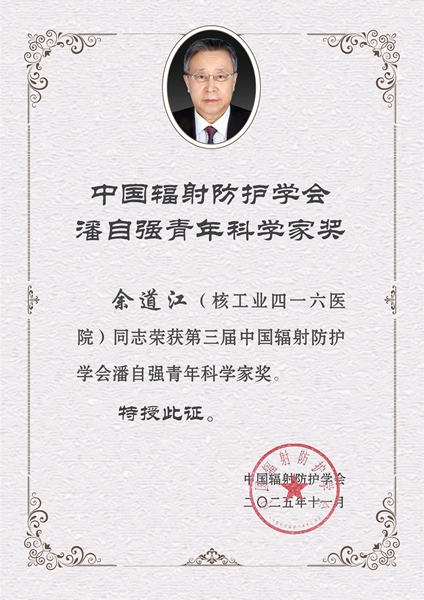 此次获奖既是对余道江个人专业能力的肯定,也是医院持续强化学科特色、推动产学研融合的重要体现。作为核工业系统重要医疗单位,医院将继续加大科研投入,深化人才培养机制,支持青年人才成长,推动辐射防护学科建设迈向更高水平,为健康中国建设贡献自己的力量。