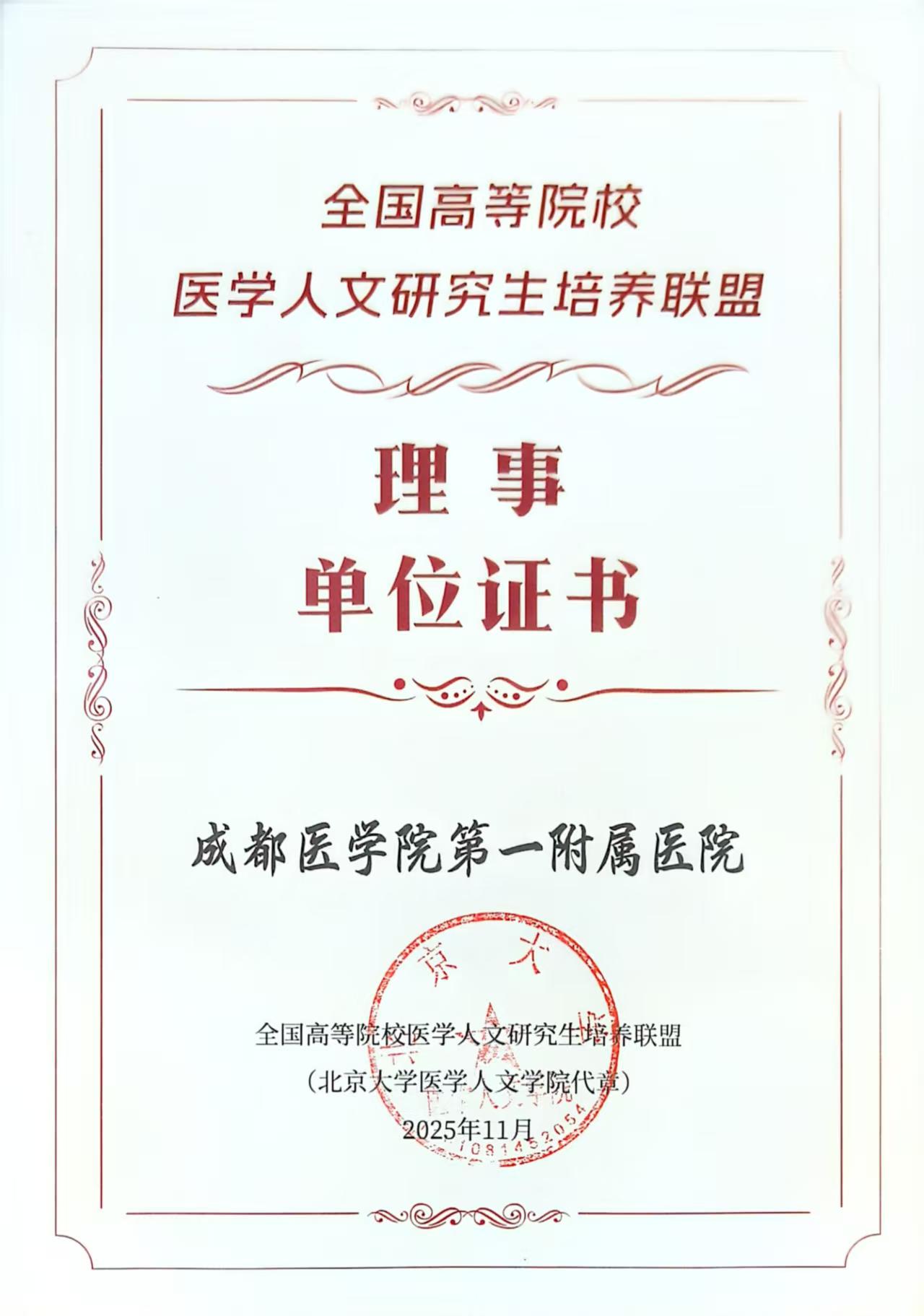 11月9日,经第二届全国高等院校医学人文研究生培养联盟大会审议通过,附一院正式成为该联盟理事单位。这一身份标志着医院在医学人文教育及跨学科人才培养方面的探索获得国内同行高度认可,为相关学科建设与人才培养搭建了更高层次的平台。