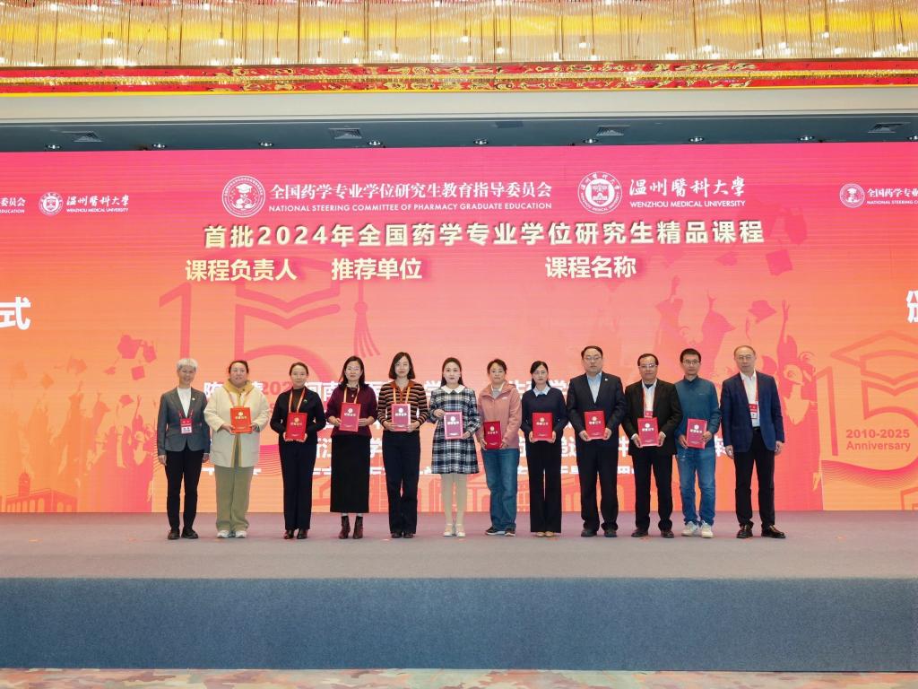 此次表彰中,药学专硕建设过程中所做的教学改革成效获得“首届全国药学专业学位教育改革优秀案例奖”(全国共25项),应雪、颜晓燕等负责的《药品质量管理》《高级临床药学实践》及《药品注册管理法规》三门课程通过“2024年全国药学专业学位研究生精品课程”首批结项验收;邵英、李燕、高秀容团队撰写的教学案例荣获“第八届全国药学专业学位优秀教学案例”,并收入中国专业学位案例中心库。