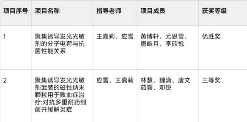 获奖学生表示,比赛不仅是专业技能的比拼,更是将知识转化为实践能力的重要过程。创新设计项目成员黄博轩和林慧表示,团队为“光敏剂项目”打磨数月,在教师指导下厘清了实验逻辑,深化了对药学价值的理解。实验技能赛获奖同学认为,扎实的基本功来自日常训练的积累,唯有注重细节,才能在操作中游刃有余。