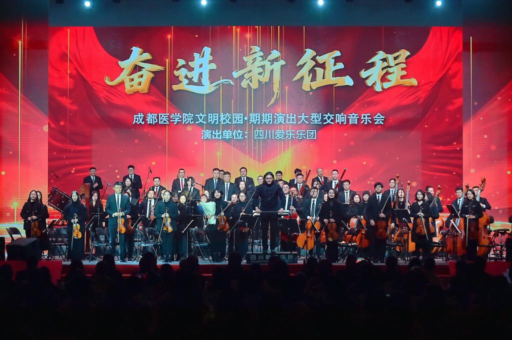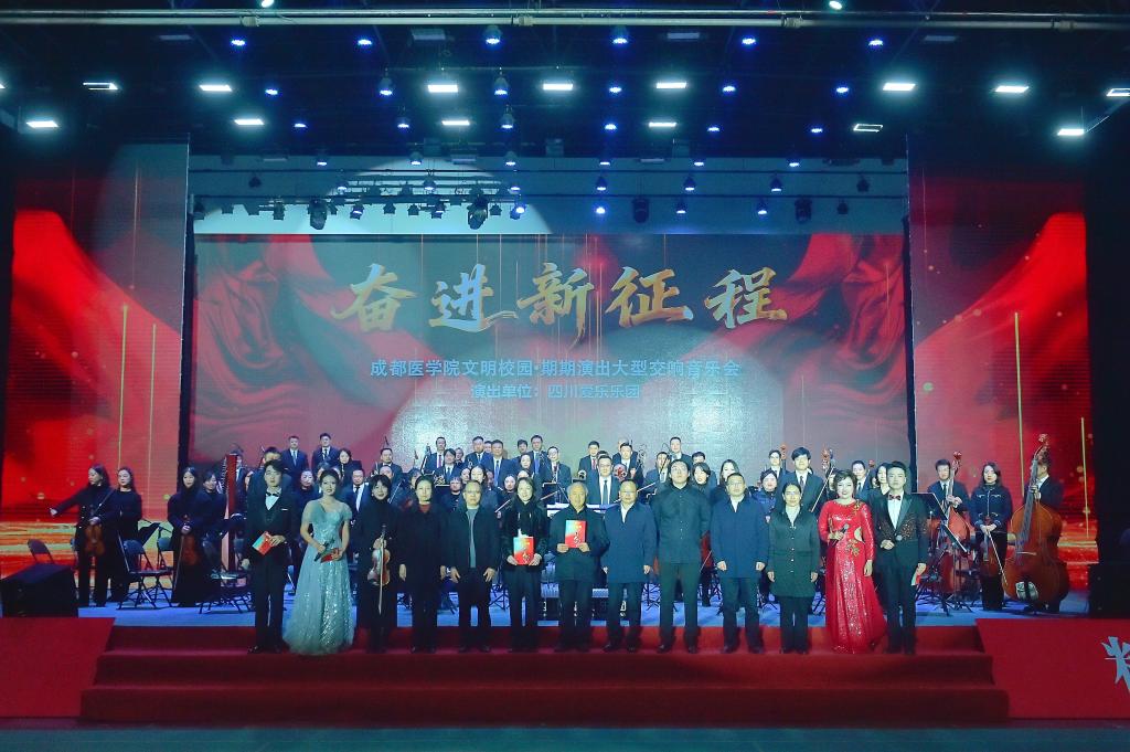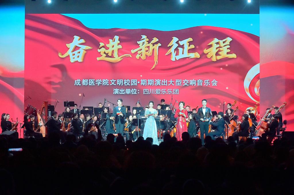 以音乐之名凝聚奋进力量,以时代强音开启崭新篇章。11月26日晚,成都医学院蜂巢体育馆内灯火辉煌、座无虚席,由中共成都医学院委员会主办的“奋进新征程”——文明校园·期期演出大型交响音乐会在此举行。四川爱乐乐团与成医师生合唱团联袂出演,用恢宏乐曲礼赞美好时代,以艺术实践涵育校园文化,近2000名师生齐聚一堂,共赴一场振奋人心的视听盛宴。