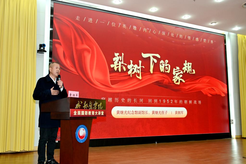 11月27日,“传承红色基因 赓续红色血脉——全民国防教育大讲堂”暨红医文化讲堂(第七讲)在成都医学院学术交流中心举行,活动特邀特级战斗英雄黄继光的侄子、黄继光纪念馆副馆长黄拥军,“南疆英雄八姐妹”的代表朱玲校友作为嘉宾,通过英雄事迹宣讲、情景再现、面对面交流等形式,带领成医师生重温英雄岁月、感悟家国情怀,推动红色基因传承与国防教育走深走实。活动由国防时报社主办,成都医学院承办。