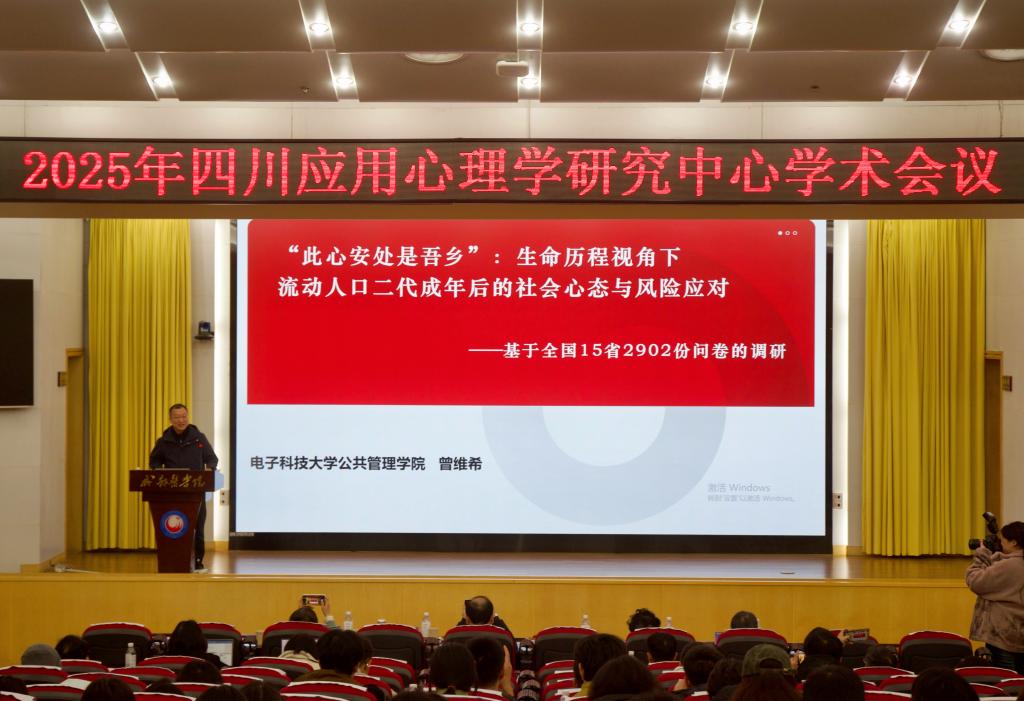 12月6日,以“社会心态与心理健康:时代转型中的应对与成长”为主题的四川应用心理学研究中心2025年学术会议在我校召开。本次会议由四川应用心理学研究中心主办、心理学院承办,来自西南石油大学、西南民族大学等省内的多所高校专家学者与我校师生共200余人以线下线上方式参会。