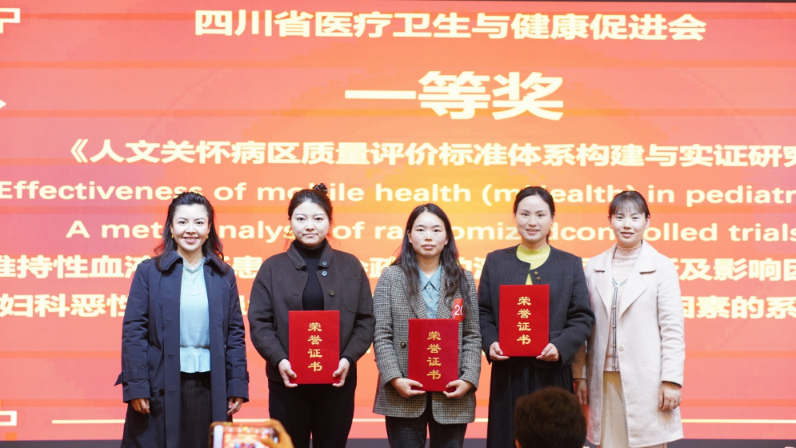 近日,在四川省医疗卫生与健康促进会护理学专业委员会第三次学术会议暨2025年护理科普及论文交流会议上,附一院护理团队凭借扎实的专业能力与创新成果,在众多参赛单位中脱颖而出,荣获特等奖1项、一等奖2项,展现出优秀的专业素养与团队风采。