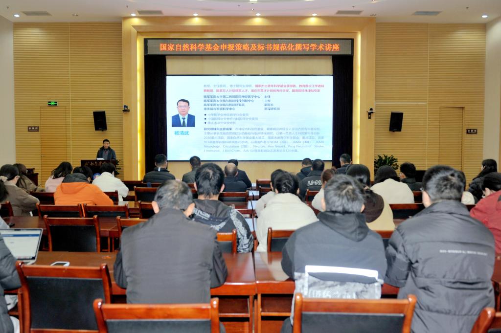 为提升我校国家自然科学基金申报质量,日前,学校特邀陆军军医大学第二附属医院杨清武教授来校,作“国家自然科学基金申报策略及标书规范化撰写”专题讲座。学校党委常委、副校长张涛出席讲座。各学院、附属医院科研骨干及青年教师踊跃参加。