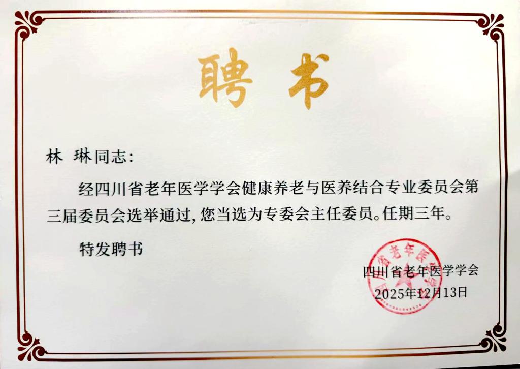 12月13日至14日,由四川省老年医学学会主办,成都医学院等单位共同承办的四川省老年医学学会健康养老与医养结合专委会第三届委员会换届选举大会暨2025年“智护银龄”学术会议在成都举办。换届选举环节,成都医学院林琳教授当选新一届专委会主任委员。