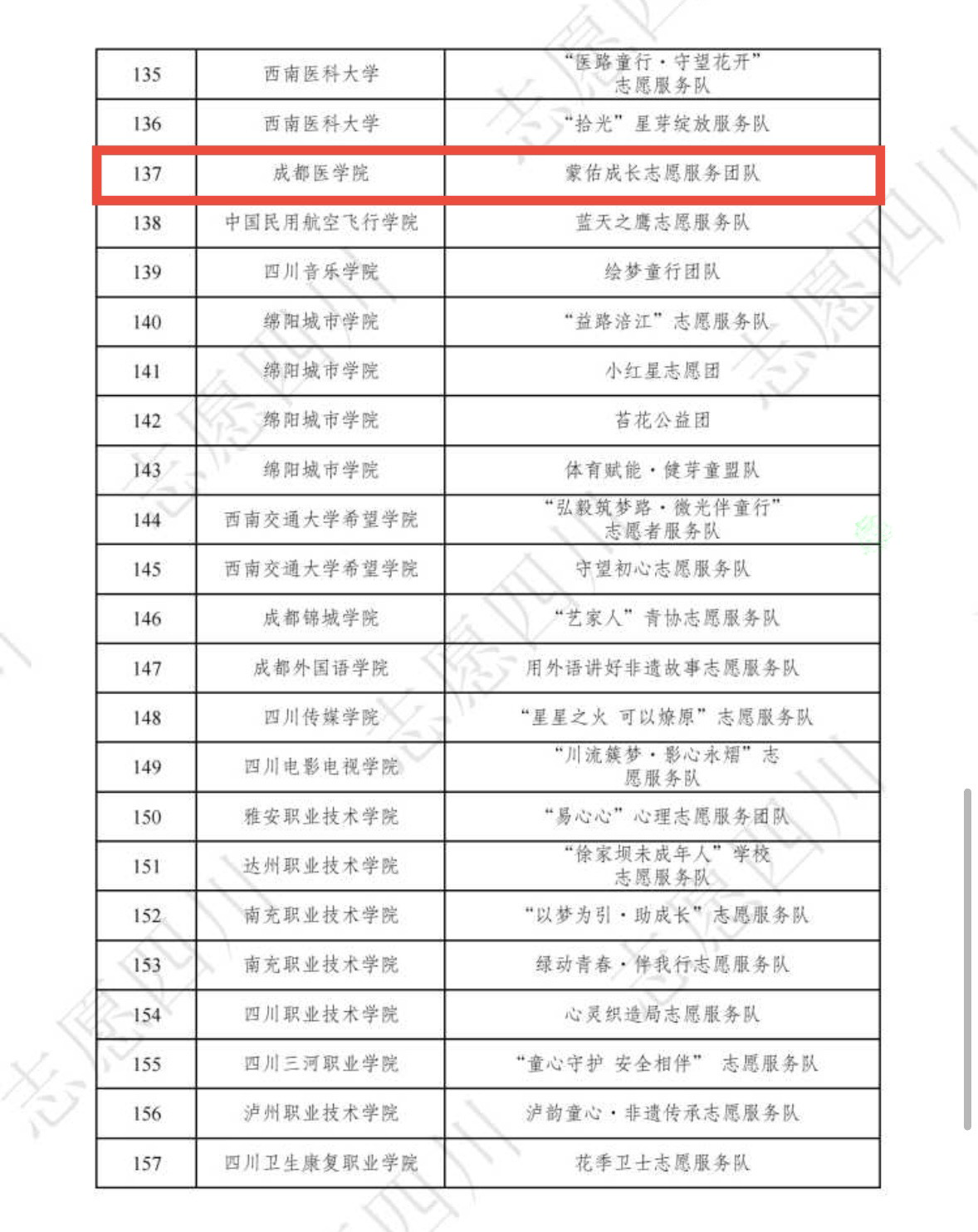 近日,由四川省青年志愿者服务中心、四川青年志愿者协会主办的“青青陪伴·志愿有我”大学生志愿服务专项行动入选名单正式公布,成都医学院青年志愿者协会蒙佑成长志愿服务团队成功入选。这是我校志愿服务工作在省级专项行动中取得的又一重要成果。