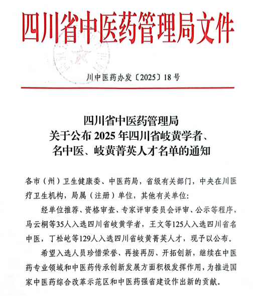 在2025年四川省岐黄学者、名中医及岐黄菁英人才名单中,附二院康复医学科主任钟建国入选“第七批四川省名中医”,中西医结合科主任李涛入选“第二批岐黄菁英人才”。“名中医”重点在全省选拔从事中医药临床一线工作、中医药理论功底深厚、业务精湛、临床水平高的专业技术人员;“岐黄菁英人才”重点在全省选拔中医药医教研产各专业领域专业水平较高、提供优质中医药服务或开展创新性研究,有培养潜力的青年骨干人才。