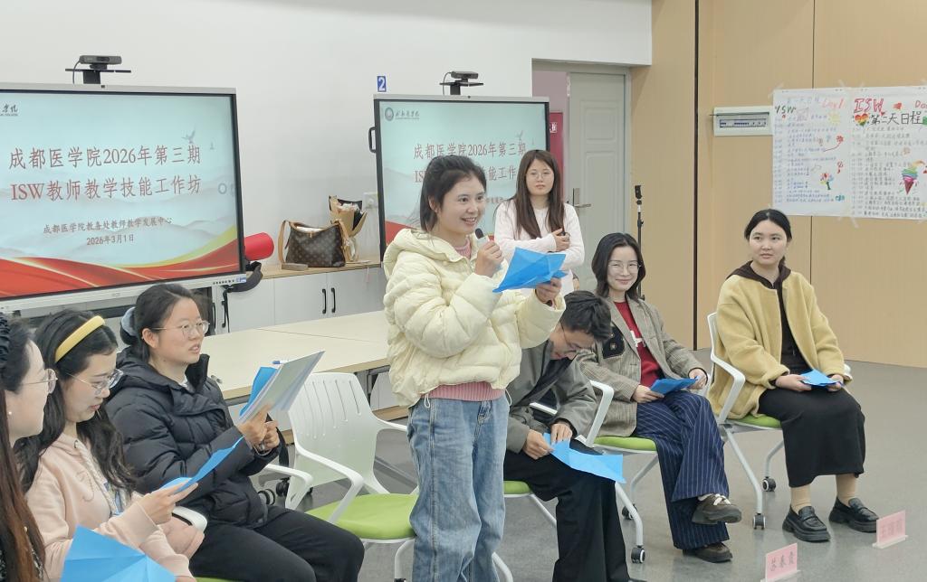 近日,成都医学院第三期教学技能工作坊(ISW)研修班收官,15名教师完成三天沉浸式研修,获得国际认证的ISW结业证书。自2024年7月首期开班以来,学校已连续三年举办ISW,累计培训青年教师46名,这一持续深耕的教师发展项目,是学校接轨国际教学理念,推动教师从传统讲授向引导式、互动式教学转型,提升教学质量的重要举措。