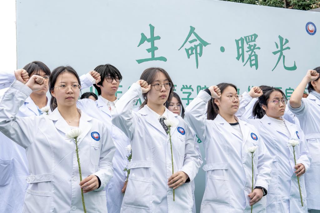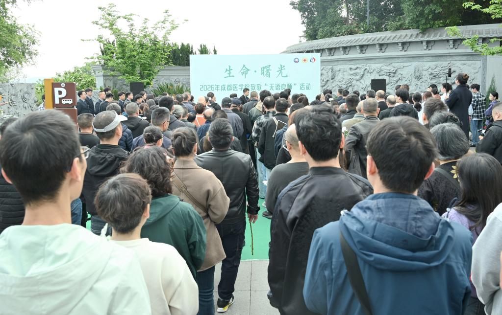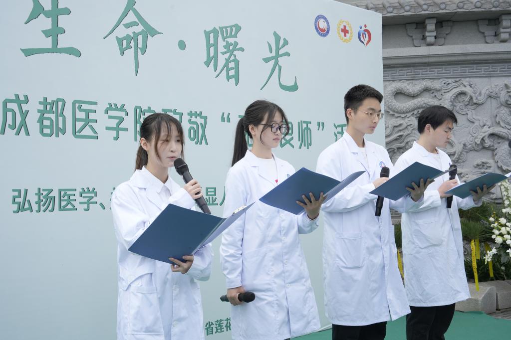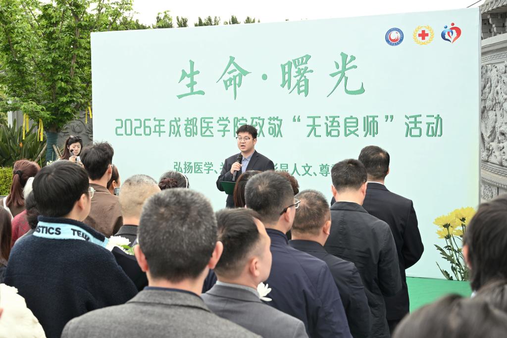 现场的成医学子表示,将永远铭记“无语良师”的无言教诲,把这份大爱精神融入医学学习与未来的职业道路中,把对“良师”的敬意融入每一次专业学习、每一次临床实践中,以精湛的医术、仁厚的医德守护生命、践行使命,让生命的希望与温暖永驻人间。