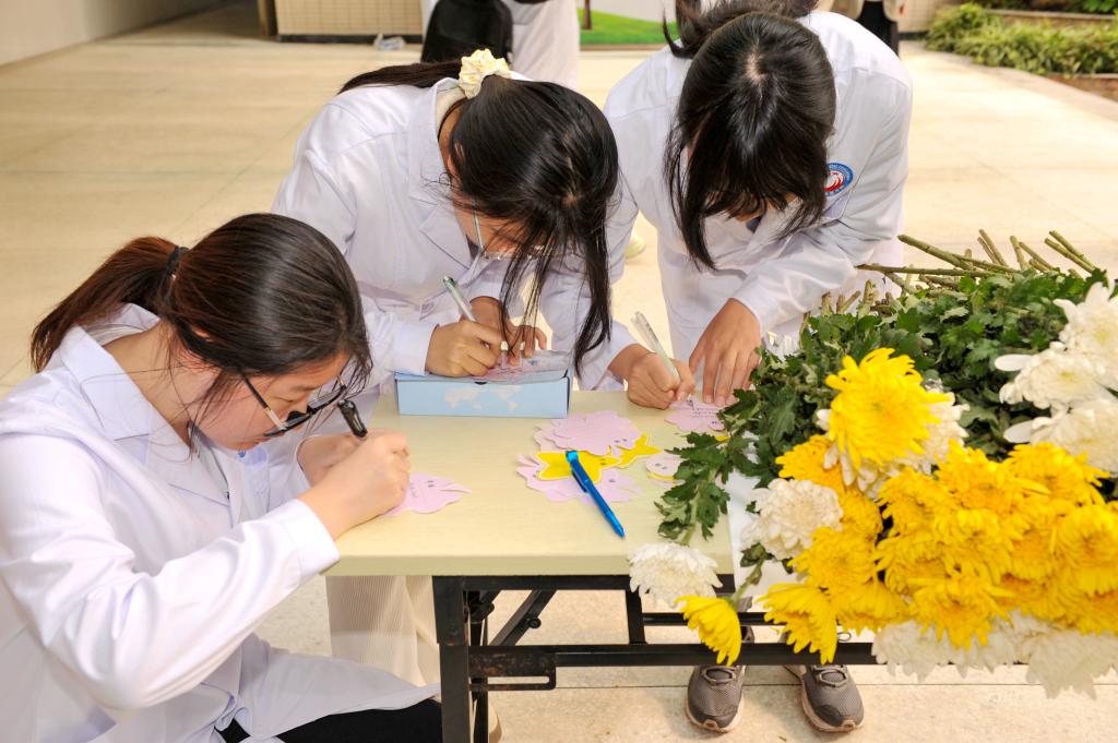 2025级一位临床医学专业学生说:“‘无语良师’教会我的第一课,不是解剖,而是敬畏生命。”一些同学在卡片上写下“谢谢您,让我懂得了生命的重量。”“愿您安息,我们会记住您的奉献。”感恩话语,并粘贴在“生命之树”展板上,卡片轻轻摇曳,如同枝叶间绽放的花朵。