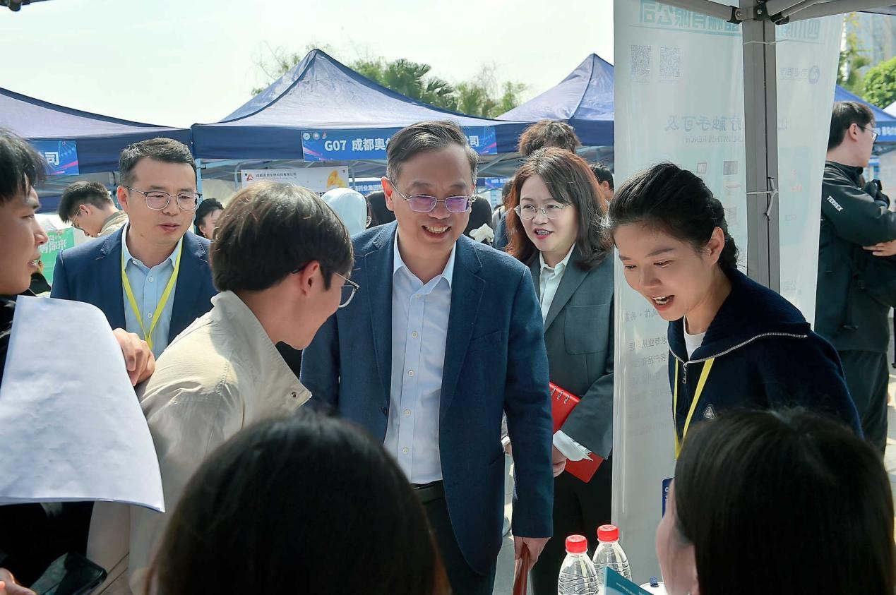 校党委副书记、校长潘克俭,校党委常委、副校长王计生深入双选会现场走访用人单位展位,详细了解企业人才需求和行业发展动态。学校相关职能部门负责人、各二级学院分管负责人及毕业年级辅导员现场向用人单位推介毕业生,深度推进校企合作,指导毕业生求职应聘。