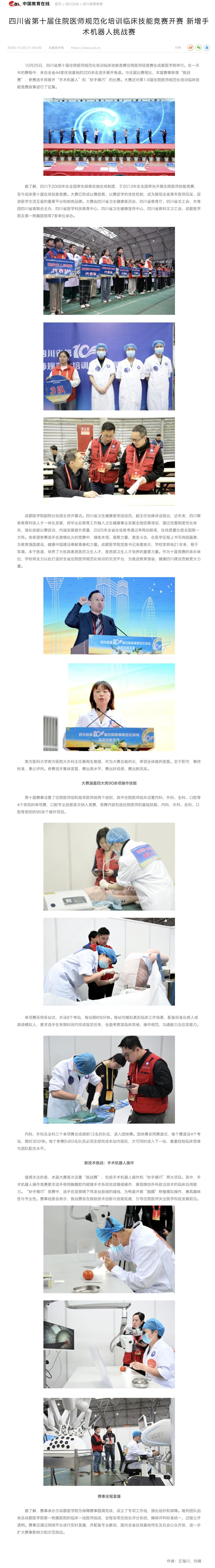 10月25日,四川省第十届住院医师规范化培训临床技能竞赛住院医师组竞赛在成都医学院举行。在一天半的赛程中,来自全省44家住培基地的200余名选手展开角逐。与往届比赛相比,本届赛事新增“挑战赛”,参赛选手将展开“手术机器人”和“妙手精巧”的比赛。大赛还对第1-9届住院医师规范化培训临床技能竞赛故事进行了征集。