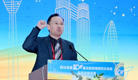 成都医学院副院长张刚主持开幕式。四川省卫生健康委党组成员、副主任张峰讲话指出,近年来,四川聚焦教育科技人才一体化发展,将毕业后教育工作融入卫生健康事业发展全局统筹谋划,通过完善制度优化体系,强化技能以赛促训,内涵发展提升质量,2025年全省住培首考通过率再创新高,住培质量位居全国第一方阵。他希望参赛选手在激情似火的竞赛中,锤炼本领、凝聚力量、激发斗志,在医学征程上书写绚丽篇章,为教育强国建设、健康中国建设奉献青春和力量。成都医学院党委书记来建表示,学校军转地21年来,根于军魂、本于医道,培养了大批高素质医药卫生人才,是西部卫生人才培养的重要力量。作为十届竞赛的承办单位,学校将全力以赴打造好全省住院医师规范化培训的交流平台,为推进教育强省、健康四川建设贡献更大力量。