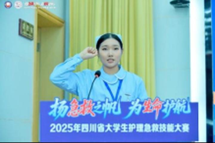 近日,2025年四川省大学生护理急救技能大赛在成都医学院新都校区开赛。在为期一天半的初赛和决赛中,“准护士”围绕数个临床急救案例进行比赛,重在考核学生的临床护理思维能力、急救技术操作规范性、人文关怀能力、团队协作能力等。