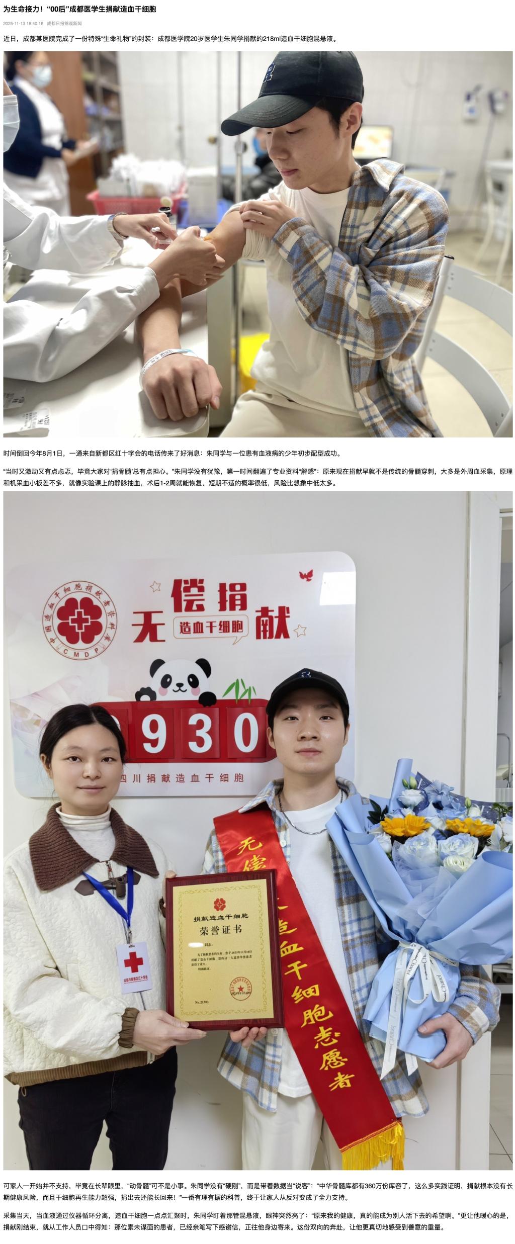 可家人一开始并不支持,毕竟在长辈眼里,“动骨髓”可不是小事。朱同学没有“硬刚”,而是带着数据当“说客”:“中华骨髓库都有360万份库容了,这么多实践证明,捐献根本没有长期健康风险,而且干细胞再生能力超强,捐出去还能长回来!”一番有理有据的科普,终于让家人从反对变成了全力支持。
