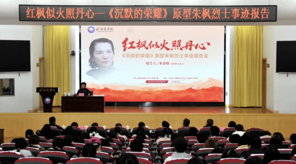去年,随着电视剧《沉默的荣耀》热播,隐蔽战线的故事引发关注。2025年12月5日,剧中人物原型朱枫烈士的孙女朱容瑢走进成都医学院新都校区,通过珍贵的家藏照片、史料和亲口讲述,让一段尘封的历史变得可感、可触。