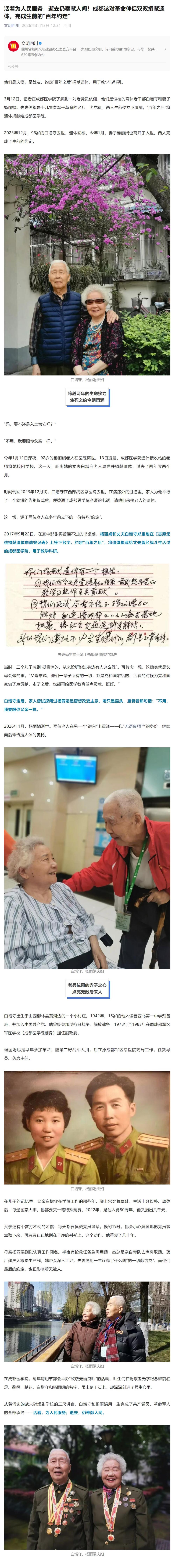 2023年12月,96岁的白增守去世,遗体回校。今年1月,妻子杨丽娟也离开了人世。两人完成了生前的约定。