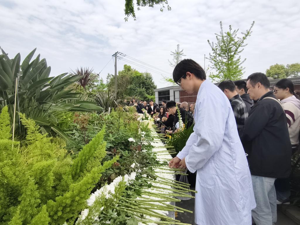 成都医学院学生代表、该校中医学大一学生周子翔参与了整个仪式流程,在安葬仪式中为“大体老师”们献上了鲜花。在接受采访时,他直言感到了深深的震撼和感动:“在课堂上他们是沉默的老师,却教会我们最深刻的道理——敬畏生命、尊重人性。他们让我们明白,医学不仅是技术的积累,更是人文的沉淀。”