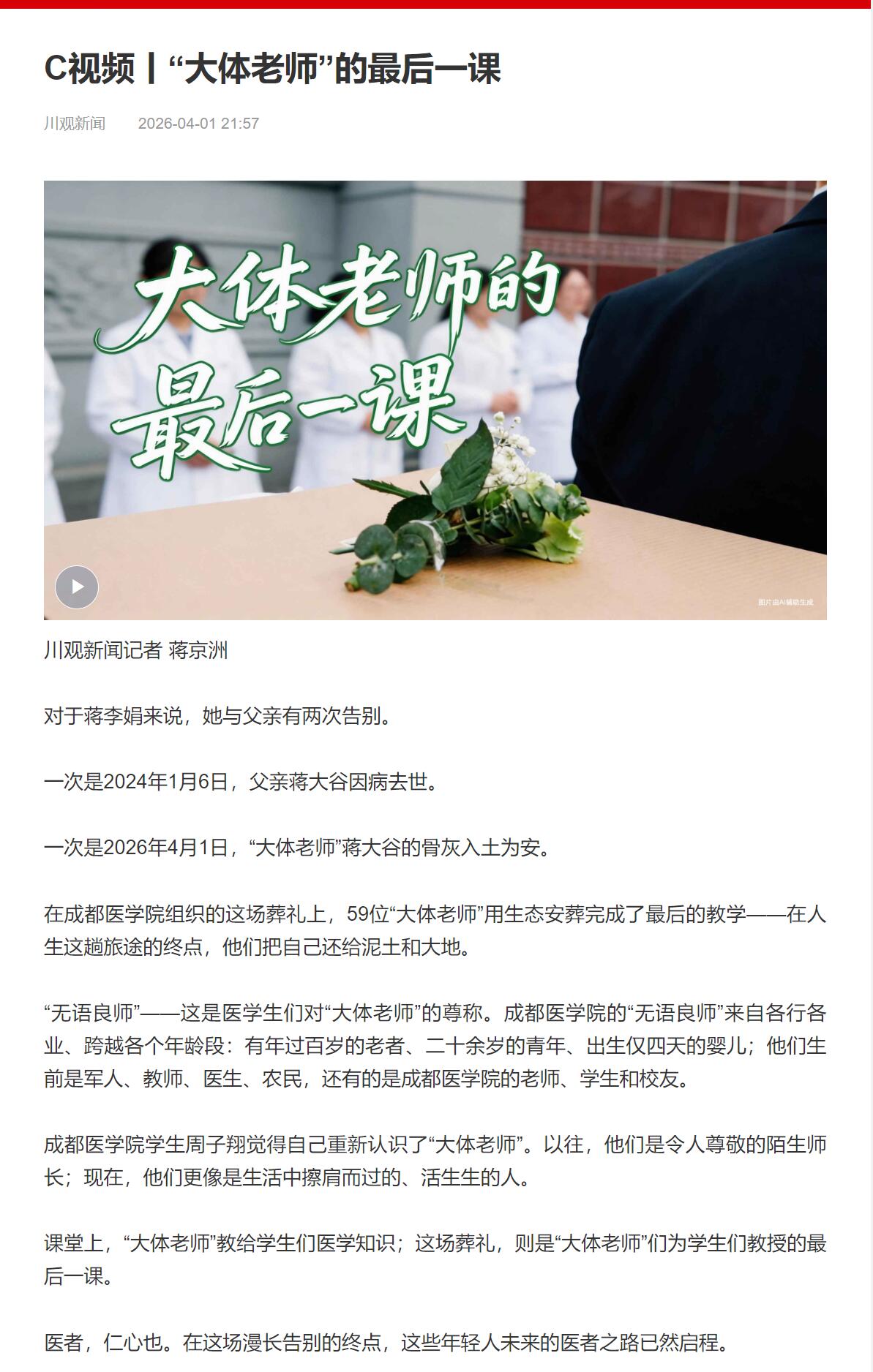 一次是2026年4月1日,“大体老师”蒋大谷的骨灰入土为安。