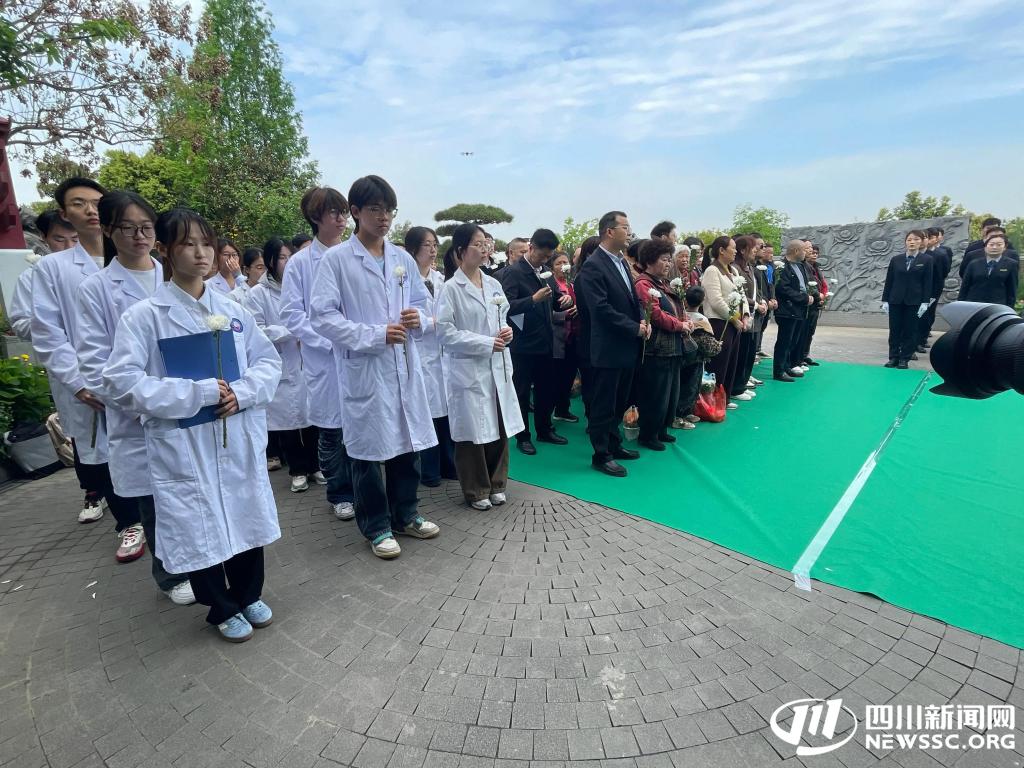 惠风送暖,清明寄思。4月1日,成都医学院在莲花公墓蜀龙园区为59位“无语良师”举行集体生态安葬仪式。成都医学院师生、遗体捐献志愿者家属等百余人,在庄重肃穆的仪式上,通过敬献鲜花、诗歌朗诵、医学生宣誓等形式,向用遗体完成教学任务、无私奉献的“无语良师”,致以诚挚的敬意和缅怀。