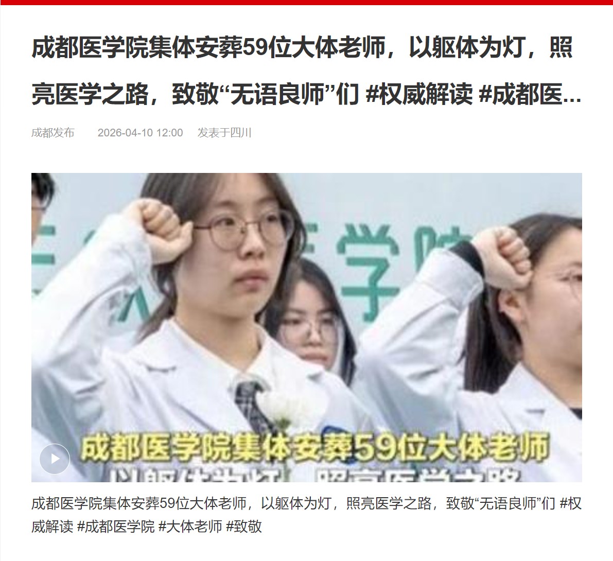 成都医学院集体安葬59位大体老师,以躯体为灯,照亮医学之路,致敬“无语良师”们 #权威解读 #成都医学院 #大体老师 #致敬