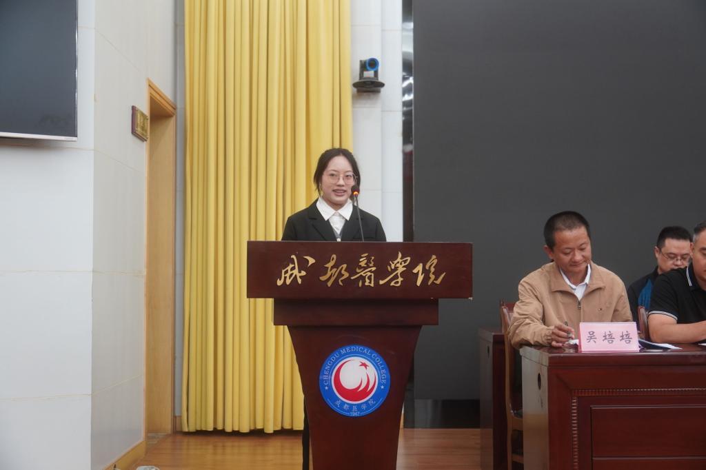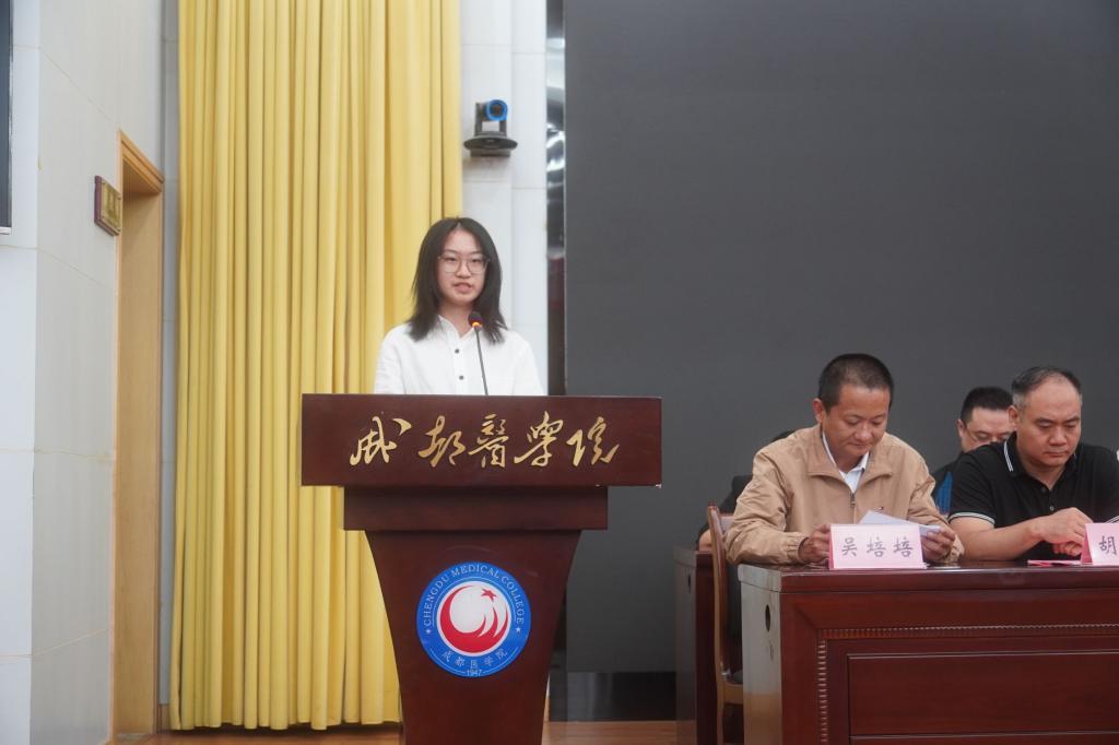 邹雨琴同学作为老生代表分享了自己对大学生活的感悟:从“拥抱陌生”开启求学旅程,在“寻找节奏”中完善自我,在“珍惜附近”后收获真挚回响。