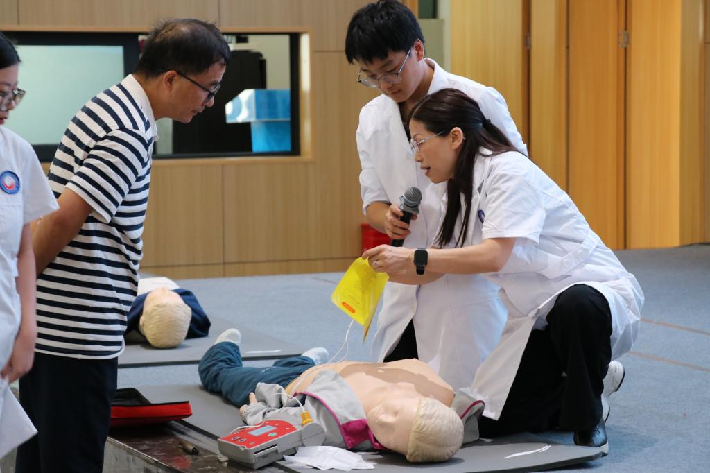 在急救科普活动现场,党支部书记陈小菊带领科普团队及师生党员,聚焦急救包扎、心肺复苏、海姆立克急救法等实用技能,通过“深入浅出讲解+规范操作演示”的方式,让专业知识通俗化、可操作化。参与人员热情高涨,纷纷在模型上实操练习,党员教师全程一对一耐心指导,精准纠正动作细节,确保大家“听得懂、学得会、用得准”,真正实现应急技能“上手能用”。此次活动不仅有效提升了异地高校师生在突发事件中的自救互救能力,更营造了“人人学急救,急救为人人”的良好氛围,让护理专业的价值在服务社会中落地生根。
