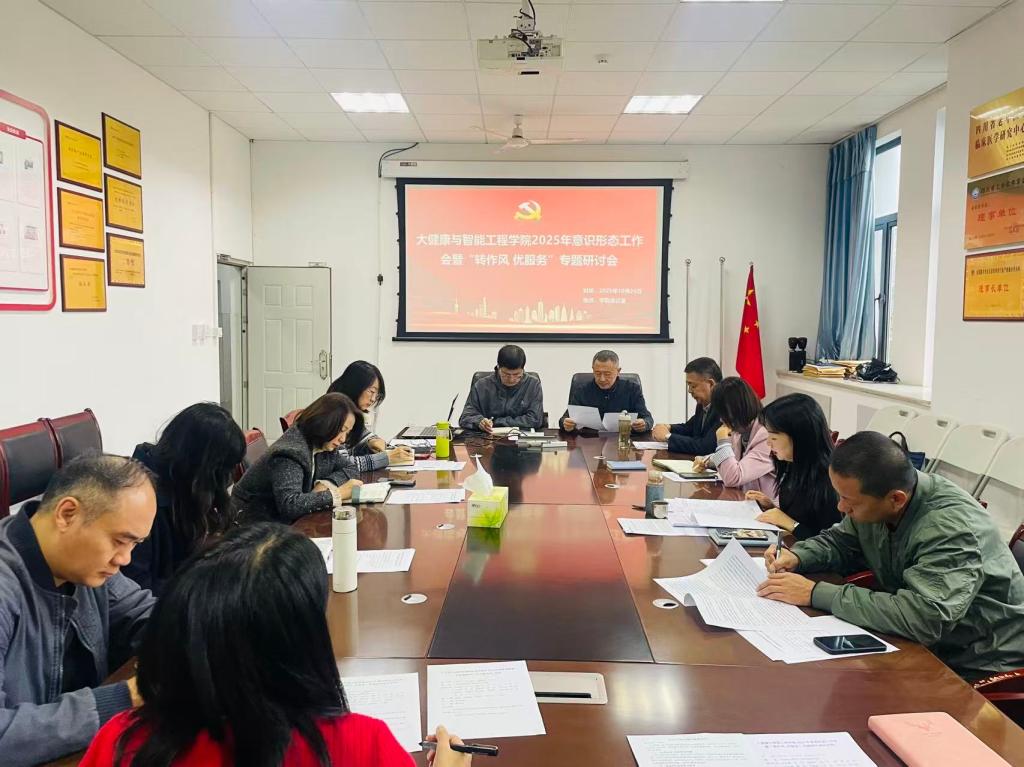 为深入贯彻落实新时代意识形态工作要求,扎实推进作风建设与服务质量提升,10月24日,大健康与智能工程学院召开2025年意识形态工作会暨“转作风 优服务”专题研讨会。会议聚焦意识形态责任落实与作风效能优化,为学院高质量发展凝聚思想共识。学院党委委员、纪委委员、党支部书记、教研室主任、行政科室负责人参会。