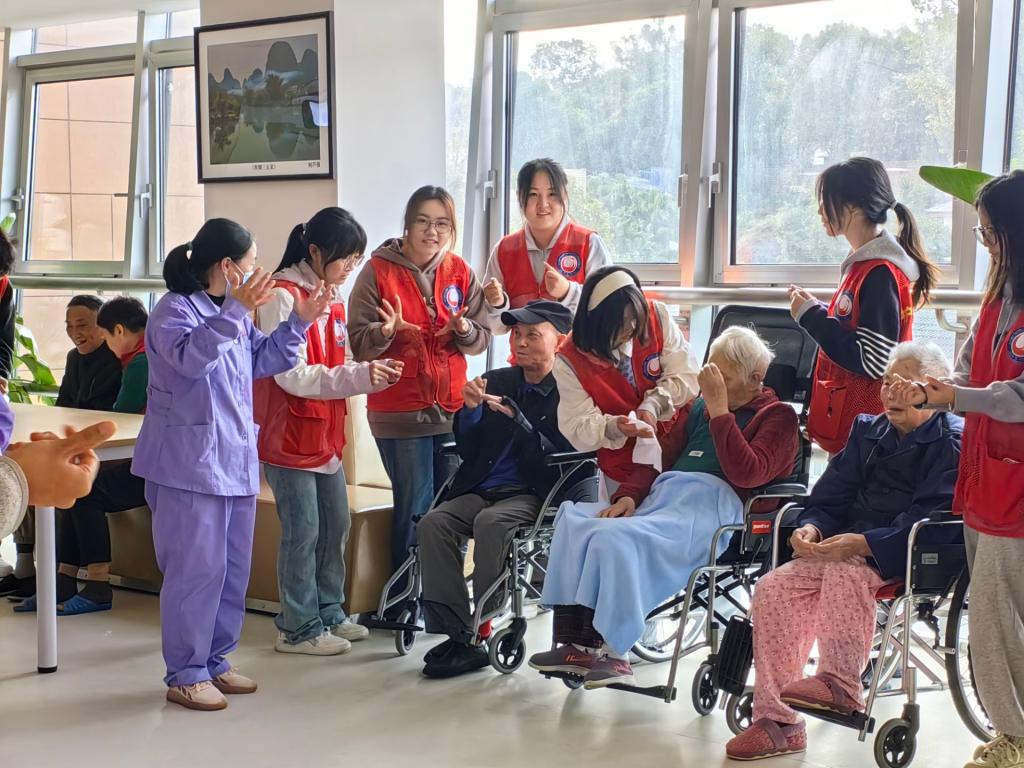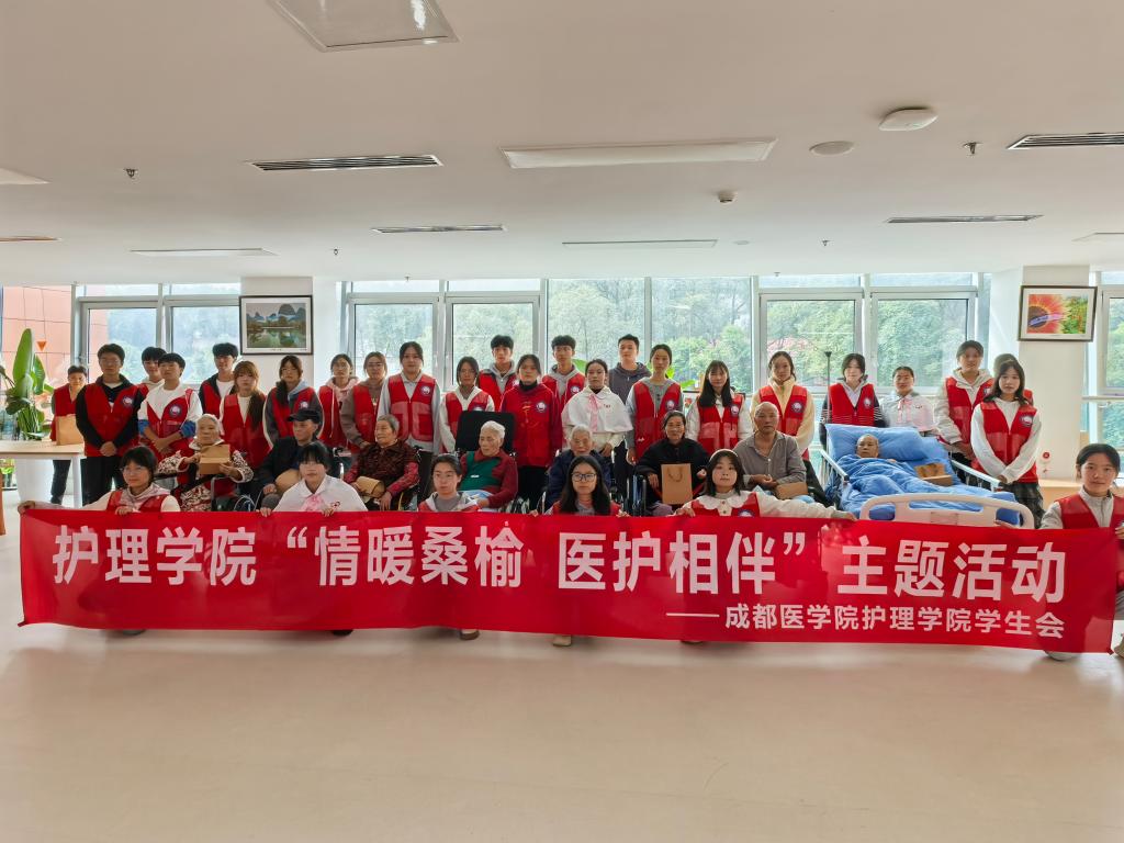 为大力弘扬中华民族敬老、爱老、助老的传统美德,践行“仁爱、奉献”的护理精神,10月25日,护理学院学生会组织30名志愿者,前往成都市第八人民医院,开展“情暖桑榆,医护相伴”重阳节主题慰问活动,为老人们送上了节日的诚挚祝福与温暖陪伴。