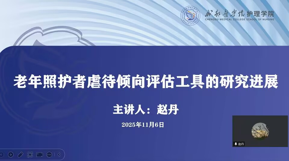 赵丹老师结合相关研究成果,围绕老年照护者虐待倾向的评估工具、适用人群与应用情况进行了阐述。她指出,全球老龄化加剧使老年虐待问题凸显,准确评估照护者虐待倾向对减少虐待事件意义重大。未来需进一步研发适配我国文化背景的评估工具,完善验证机制,为老年照护者管理与干预提供科学依据。