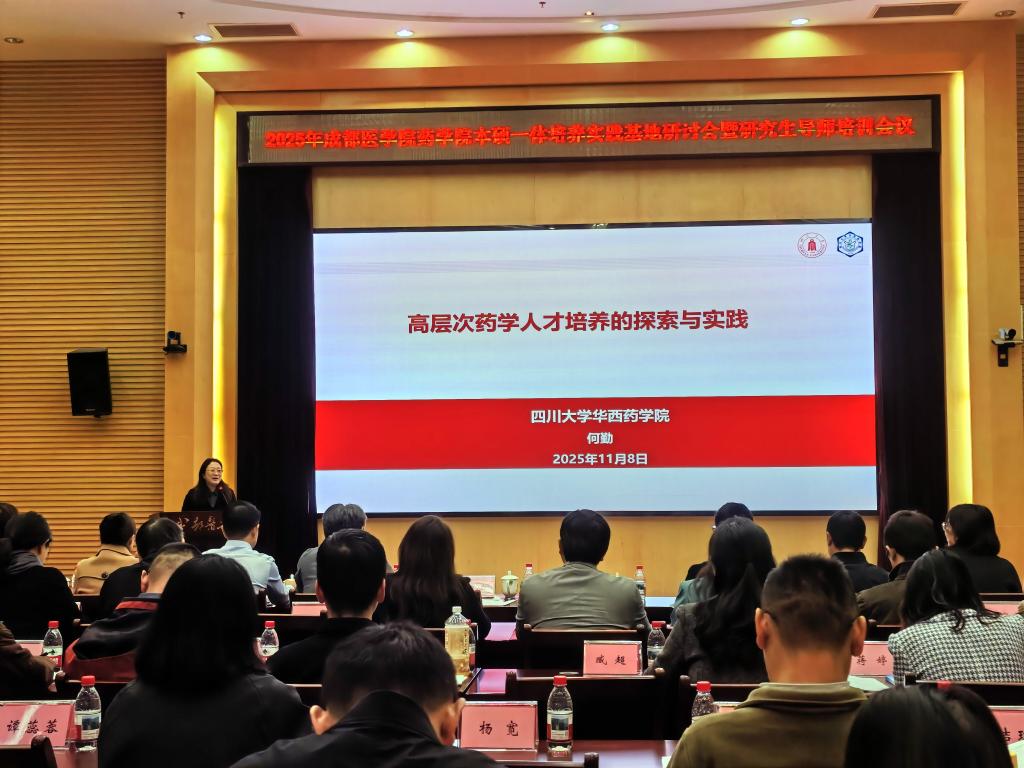导师培训会围绕人才培养、课程建设等主题内容,四川大学药学院何勤教授、科伦药业总经理刘文军、生科院罗勤教授受邀分别做了题为《高层次药学人才培养的探索与实践》《医药企业促进行业人才培养的探索和思考》《融产入教,项目赋能——国家一流课程的建设与实践》的专题报告。大会对参与本科生实习带教基地的导师和长期参与学位点建设并作出突出贡献的研究生行业导师进行了表彰。