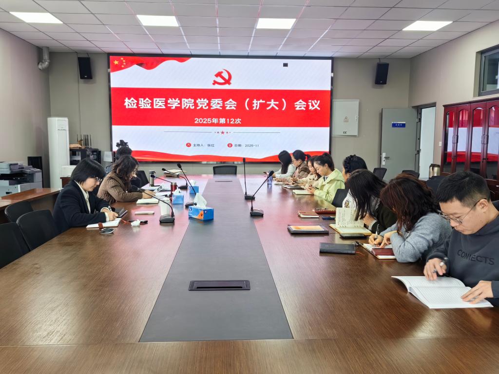 11月7日中午,检验医学院党委在A7实验楼B405会议室组织召开党委扩大会议。学院全体党委委员、纪委委员、师生党支部书记共同参会。会议聚焦中央最新精神学习与党纪学习教育,并就贯彻落实学校相关工作作出重要部署。
