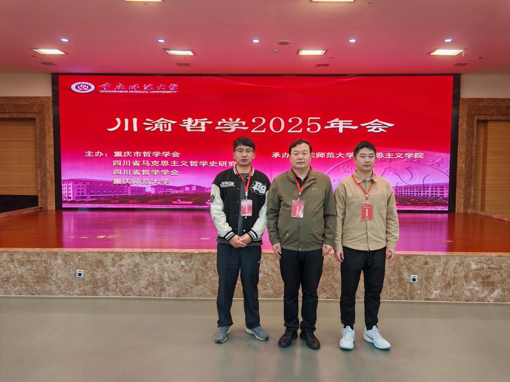 10月25日,由重庆市哲学学会、四川省马克思主义哲学史研究会、四川省哲学学会与重庆师范大学主办,重庆师范大学马克思主义学院承办的“川渝哲学2025年年会”在重庆师范大学举行。受会议主办方邀请,马院徐刚教授带领2名研究生参会。