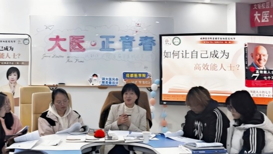 近日,成都医学院首届学生社区文化节系列活动之“初心”经典读书会(第一期)在“一站式”学生社区服务中心举行。活动由“红小医”名辅导员工作室与“青芽”辅导员工作室联合举办,特邀学校发展规划处副研究员范方仕老师担任嘉宾,与12名学生围绕《高效能人士的七个习惯》展开交流。