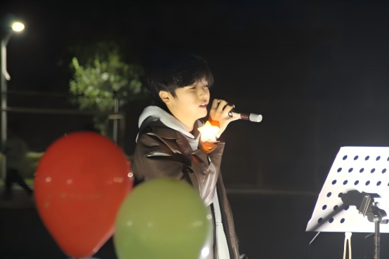 整场演出曲风多元,近二十首歌曲接连上演。《青花瓷》流转古典韵味,《Luv Shxt》迸发热烈节奏,《日不落》洋溢轻快活力,《光年之外》传递深情共鸣……来自嘻哈社、音乐协会、搭档合唱团等学生社团的歌手轮番登台,引发现场阵阵掌声与集体跟唱。观众手持灯光随节奏摇曳,点点星海与夜色交融,构成校园中一道动人的风景。