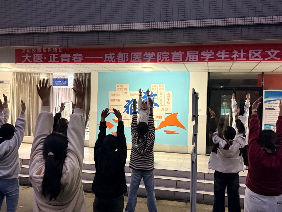 近日,“青芽”辅导员工作室联合“红小医”辅导员工作室及“易”起来团队,在“宁·志”“雅·致”学生社区广场举办“暮映初心”八段锦教学活动。该活动作为成都医学院首届学生社区文化节的特色单元,分四期开展,吸引了百余位同学积极参与。