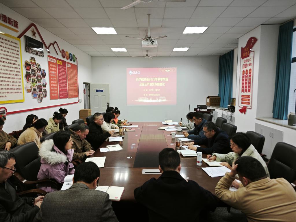 为深入学习贯彻习近平总书记关于全面从严治党的重要论述和习近平总书记关于党的自我革命的重要思想,落实学校全面从严治党的会议精神,11月26日上午,药学院党委在东区实验楼4楼会议室召开全面从严治党专题会议。联系学院的校领导出席会议,药学院党委委员、纪委委员、教研室主任、党支部书记、科级干部、全体辅导员参加会议。