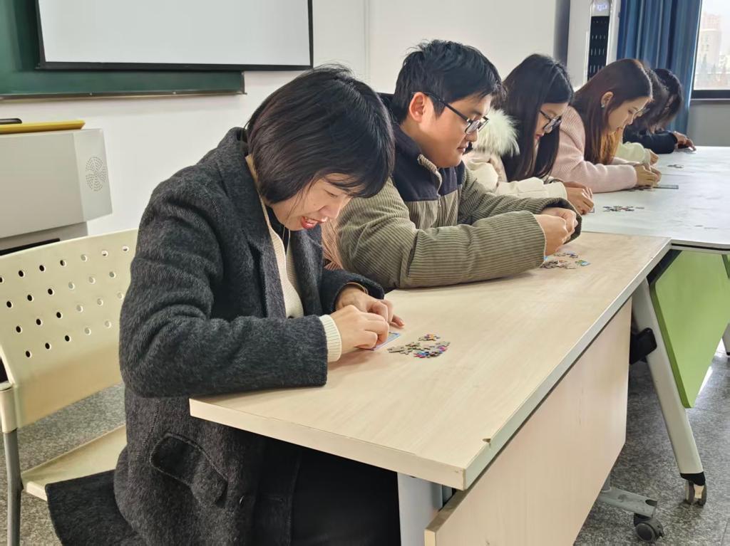 在拼图比赛中,师生沉稳配合,展现专注与细心;五子棋对弈中,双方冷静思考,在黑白之间展开智慧交锋;乒乓球台前,选手攻防转换,动作流畅有力,赢得阵阵喝彩;跳大绳与沙包项目中,大家携手合作,在跃动与笑声中重现童真乐趣,更凝聚了团队精神;羽毛球混双比赛,师生搭档默契配合,网前截击、后场扣杀接连上演,既展现出积极进取的竞技精神,也进一步深化了师生情谊。