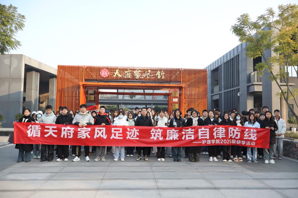12月7日,护理学院组织2025级新生前往天府家风馆,开展“循天府家风足迹,筑廉洁自律防线”特色研学活动。作为新生入学教育的关键环节,活动旨在引导未来医护工作者从优秀家风文化中汲取力量,筑牢廉洁从业的思想根基。