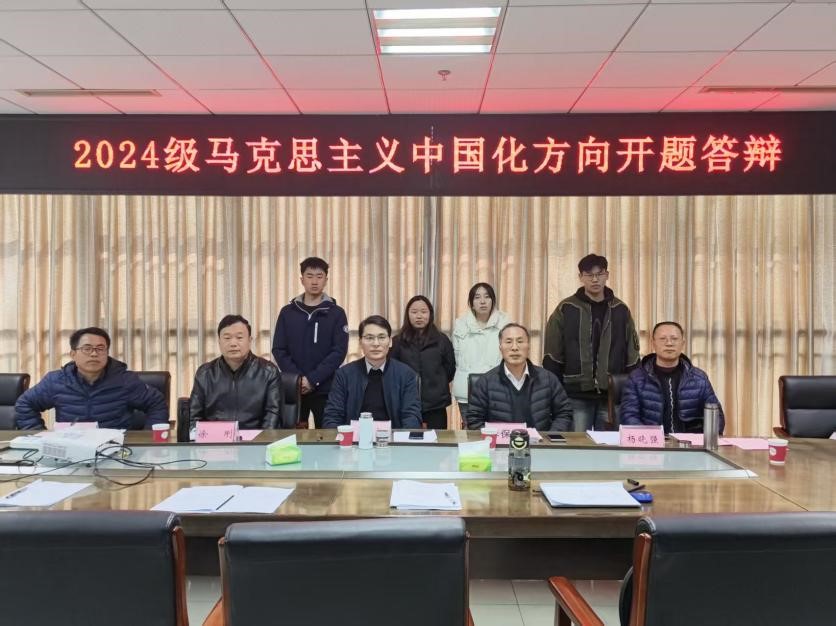 日前,马克思主义学院组织2024级马克思主义中国化研究方向(以下简称“中国化方向”)硕士研究生开题答辩。答辩评审组特邀四川大学刘肖教授担任组长,与我校李保国教授、徐刚教授组成评审专家小组,杨加明教授担任督导,研究生导师代表及中国化方向2025级硕士研究生列席观摩。
