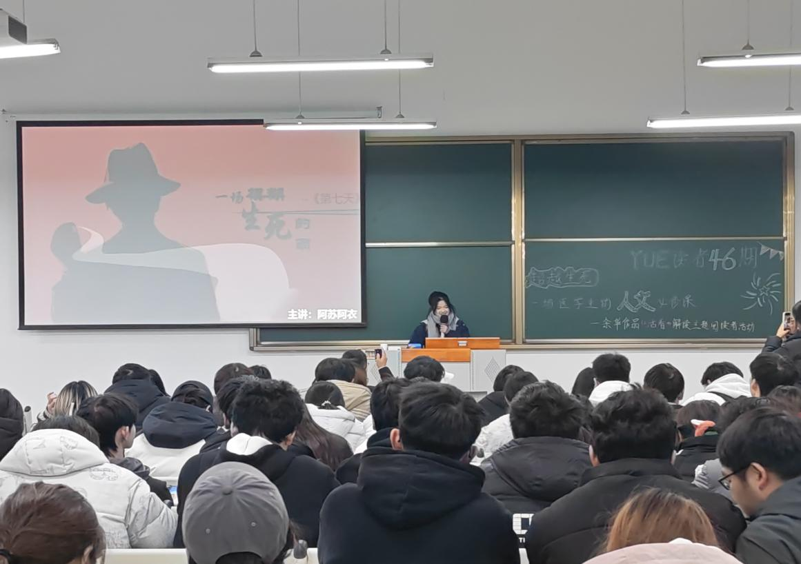 黄志霖同学聚焦《许三观卖血记》,结合书中主人公在苦难岁月中以卖血维系家庭、坚守温情的故事,剖析了平凡人在生活重压下的生命韧性,引发了在场同学对“责任与坚守”的共鸣。阿苏阿衣同学分享了《第七天》的阅读感悟,以书中荒诞却饱含温情的叙事为切入点,探讨了生命存续的多元意义,让大家对“死亡之外的精神延续”有了全新思考。两位同学的分享视角独特、情感真挚,赢得了现场阵阵掌声。
