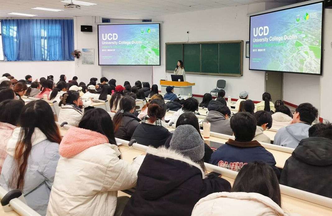 宣讲老师详细介绍了“3+1+1”项目的培养模式,即国内3年本科学习、爱尔兰都柏林大学1年本科阶段学习和1年硕士阶段学习。重点解读了项目的申请条件、时间节点、学费标准及奖学金政策,帮助同学们明晰规划方向。同时,分享了都柏林大学的校园环境、专业优势及留学生活注意事项,解答了同学们关于语言成绩要求、学分互认等疑问。