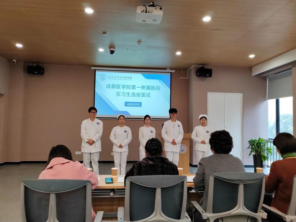 12月12日上午,成都医学院第一附属医院来护理学院开展护理实习生面试选拔,重点考察学生专业基础、临床思维与沟通能力。