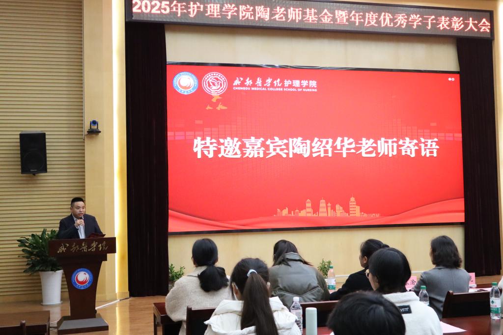 12月12日,护理学院“陶老师基金”暨年度优秀学子表彰大会在学校多功能厅举行。基金捐赠人陶绍华老师,学校相关职能部门负责人及护理学院师生代表齐聚一堂,共同见证这一荣誉时刻。