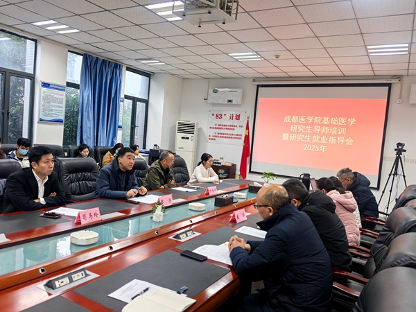 近日,基础医学院召开2025年研究生导师培训暨就业指导会。会议邀请复旦大学于专宗教授、四川大学苟马玲教授、四川省肿瘤医院万绍平教授作专业指导。校党委常委、副校长张涛肯定了基础医学院研究生教育取得的成效,期望持续加强导师队伍建设,深化研究生培养模式改革,推动基础医学学科高质量发展。